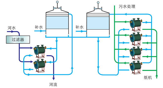 造紙行業(yè)中漂白工藝熱回收,加熱洗漿液等,應(yīng)用板式換熱器和冷卻器方可實(shí)現(xiàn)。